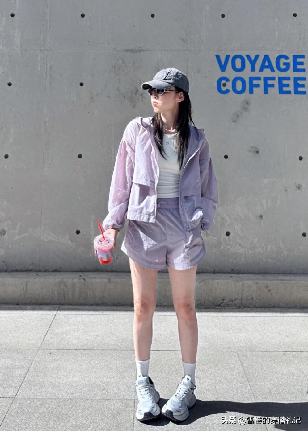 運動風的單品,若想要穿出高級感的話,還是非常注重搭配技巧的,比如適當露膚,才能讓造型更具呼吸感,使穿搭看上去更有活力。