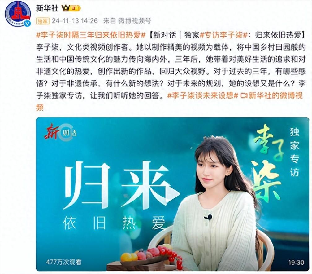2024年11月12日,停更了1200多天的李子柒終於迴歸了。她帶着一條以“漆器”爲主題的視頻,重新歸來。