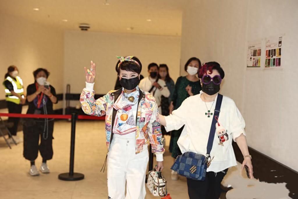 一開始說沒有搶到票,求英皇賜票的狄波拉,也終於如願來看兒子的演唱會了。狄波拉73歲了,但是她打扮的好年輕啊,還是以往的穿衣風格,戴着口罩完全看不出年紀。