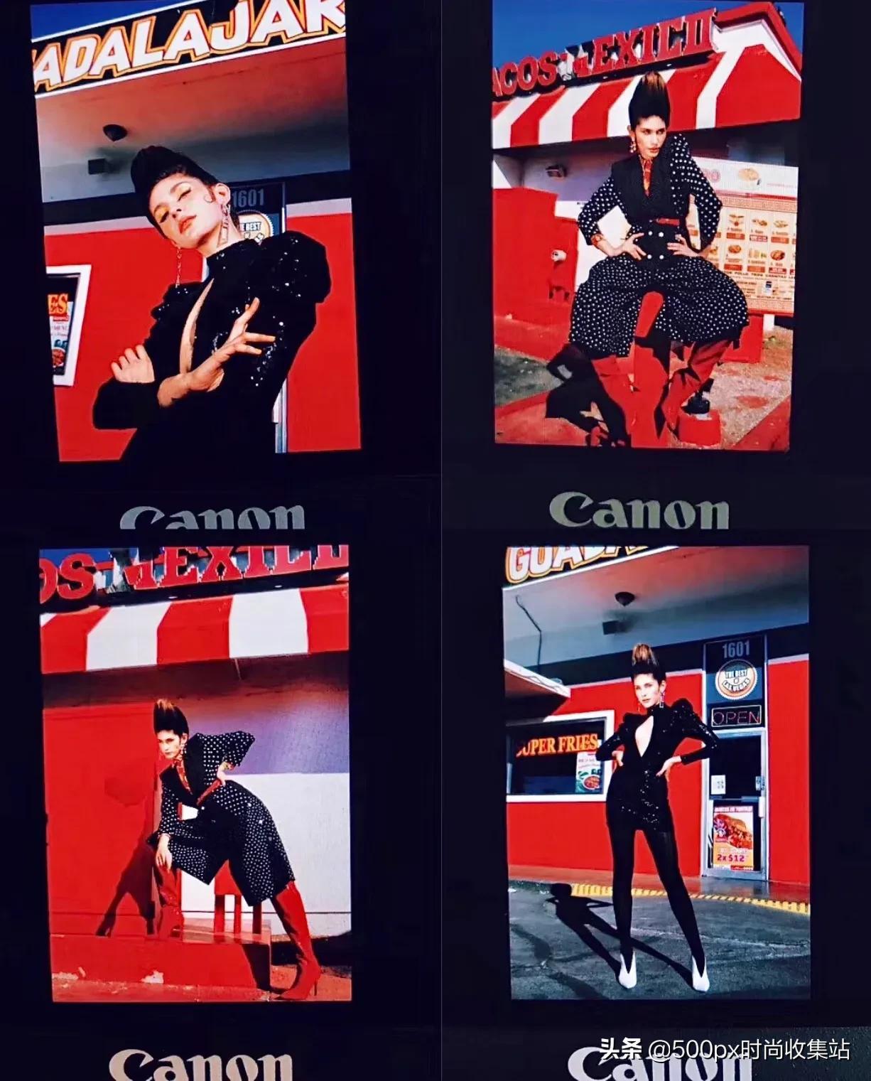 當時我現場看到搭配發現衣服鞋子黑紅白三個顏色爲主剛好模特深髮色沿着街開車看適合拍的墨西哥Taco店就是黑紅白主色的於是圍着餐廳把當天服裝基本拍了我拍照喜歡現場發揮這種方式冒險但異常鍛鍊掌控力和靈活變通能力