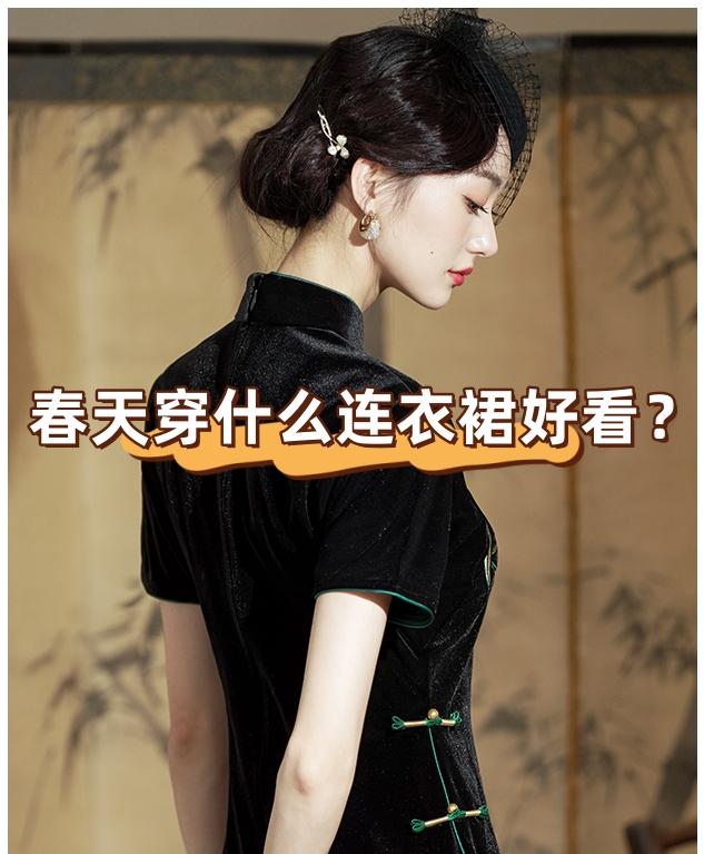 除了新中式印花裙外,這種帶有中式元素的旗袍裙能完美展現東方女性的端莊與典雅。