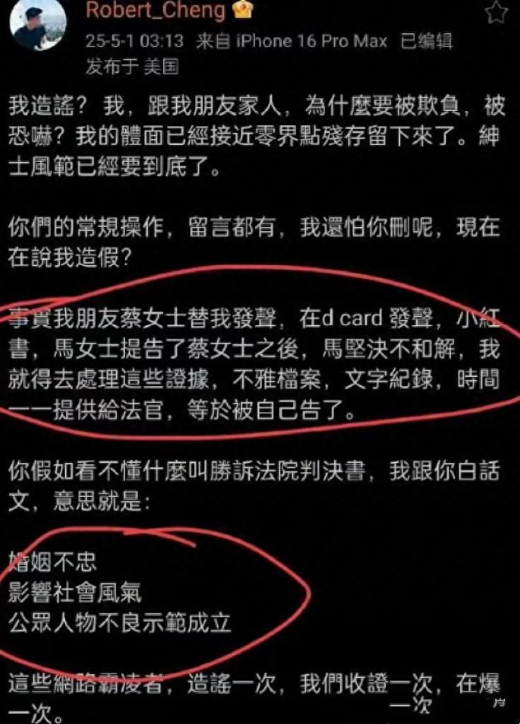 不雅檔案、文字記錄、時間線都一一提供給了法官。判決書的大體意思是:婚姻不忠、影響社會風氣、公衆人物不良示範成立。