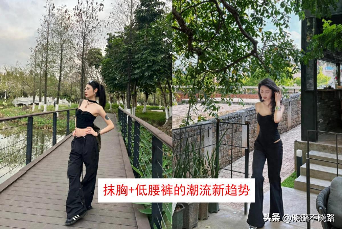 爲什麼這套組合能成爲當下流行趨勢?因爲身材展示角度來說,抹胸能完美展露直角肩與纖細手臂,低腰褲則通過降低腰線,在視覺上拉長腿部線條,強調了腰臀比,勾勒出女性凹凸有致的身材曲線,讓好身材展露無遺。