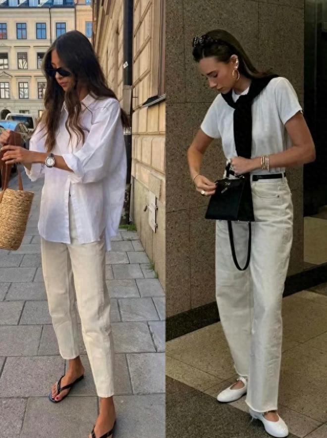 白色牛仔褲與襯衫的搭配,就顯得很知性大方,特別是配淺藍色襯衫的時候,那種清爽乾淨的氣息撲面而來,整體看着十分顯年輕,很適合夏天的打扮。