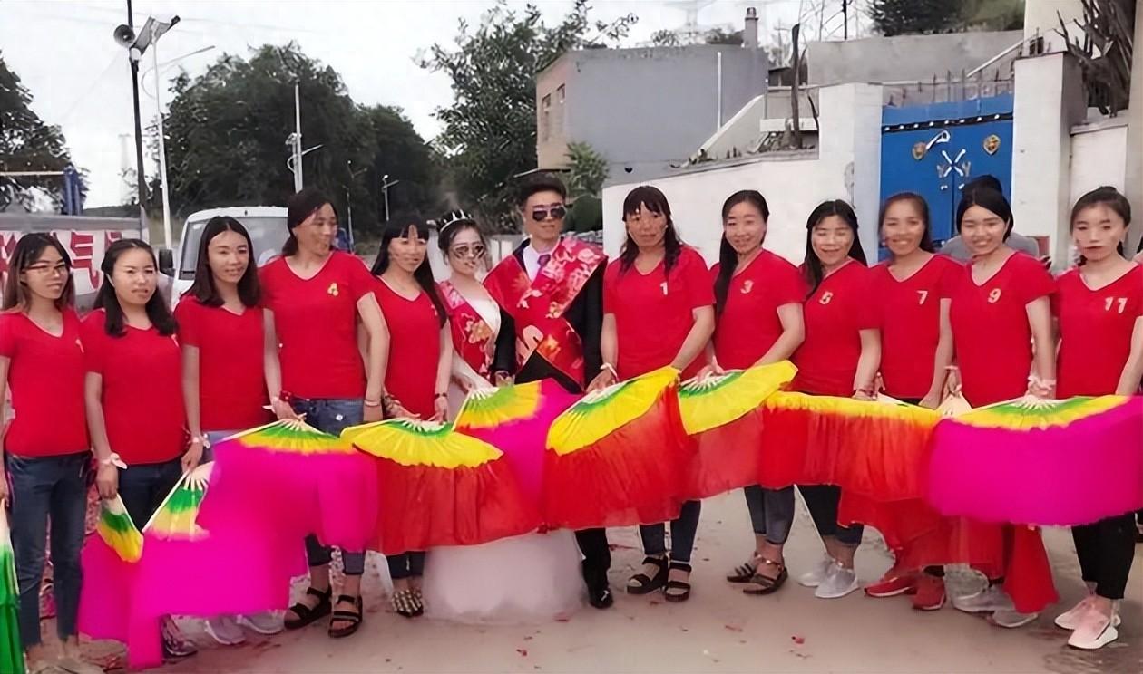 前些年,山西呂梁舉辦了一場獨特的婚禮。只見婚禮現場,11位身穿紅色短袖的女性,滿臉幸福地站在一對穿着西裝和婚紗的新人面前。
