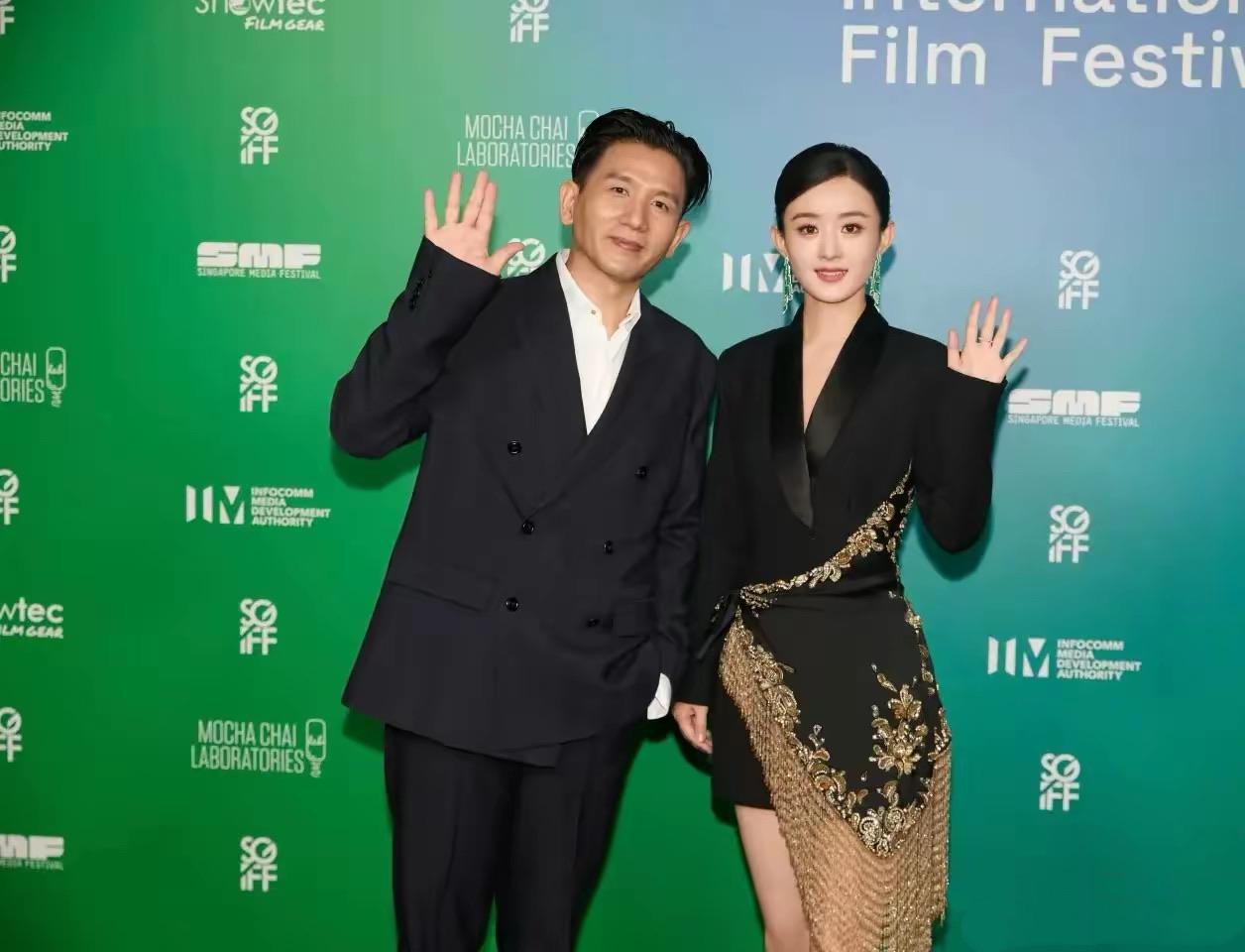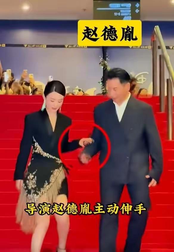 兩個人一起走紅毯,趙德胤主動伸手,想要扶着穿高跟鞋的趙麗穎。趙麗穎就像是他的女王,穿着華麗高貴。
