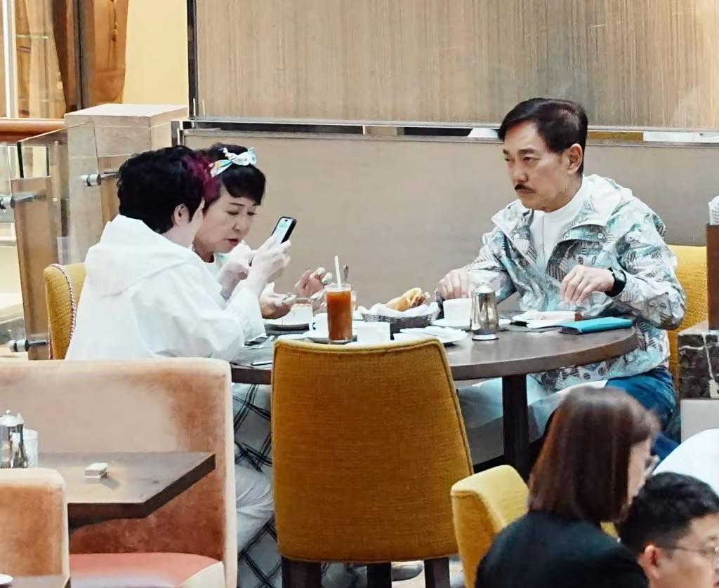 因爲狄波拉還約了陳淑芬一起聚餐,看到這樣的畫面,陳淑芬就覺得自己像個巨大的電燈泡。沒辦法,只能看手機來打發時間,別打擾了人家老兩口秀恩愛。