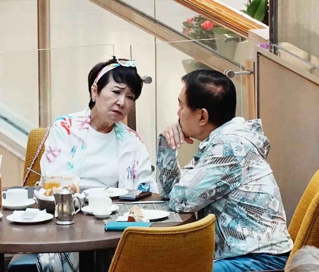73歲狄波拉和老友聚餐,嘟嘴皺眉還爲老公捋頭髮,陳淑芬像電燈泡