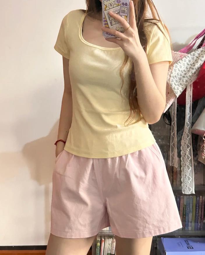 小個子女生也可以get起來的夏天短褲穿搭,一身都是偏鬆弛和隨性的,很休閒的範,淺藍色短袖t恤,悶熱的夏天也可以感受到清涼感,搭配卡其色休閒短褲,再搭配一雙黑色運動鞋,就這麼簡簡單單的,少年感十足。
