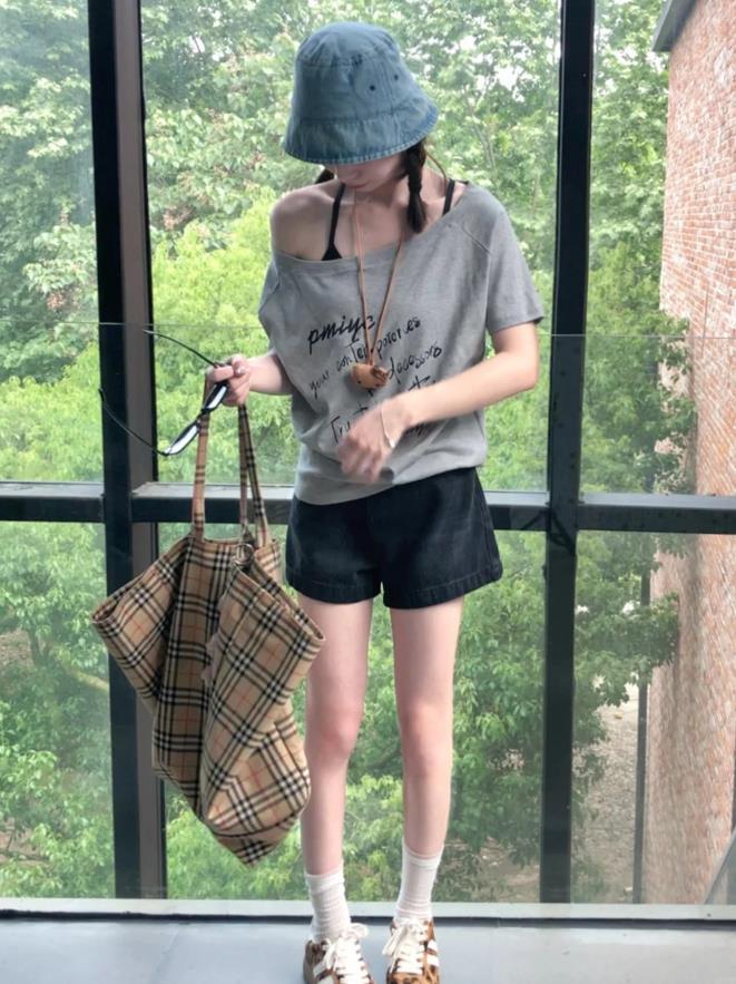 今年最流行的短褲中,又怎能沒有牛仔短褲呢?這種款式每到夏季都很受歡迎,黑色牛仔短褲+斜肩t恤,慵懶舒服又隨性。150+的小個子,就可以大膽嘗試起這種穿法,視覺上不僅顯高挑,還把腿部線條給拉長了。