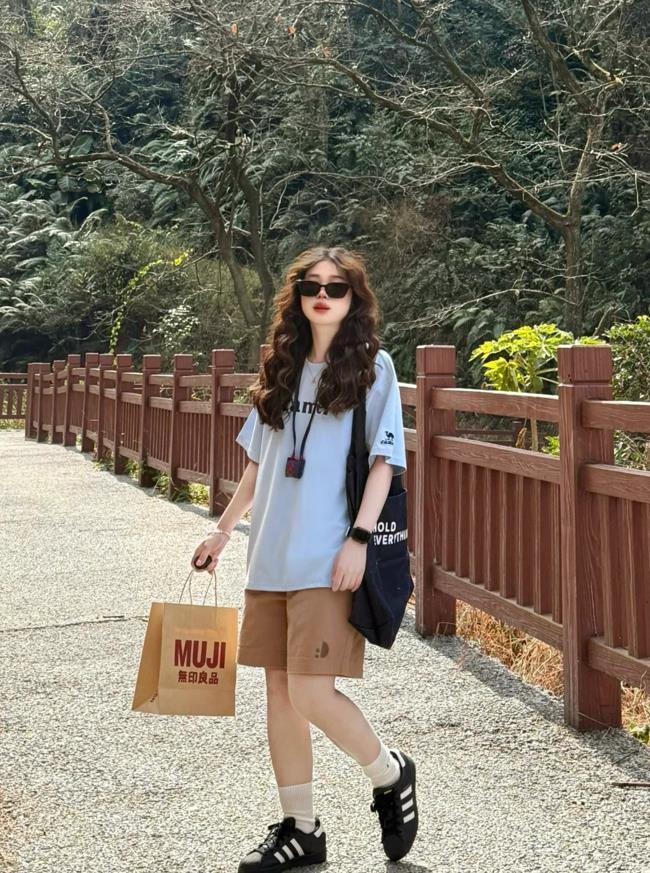 寬鬆的大t恤,人字拖+休閒短褲,這麼一套真的是專屬老廣人的出街搭配,該有的鬆弛感那是一點都不會缺,配上一頂棒球帽點綴,不僅顯年輕還充滿活力,隨便挎個大包包就出門吧。