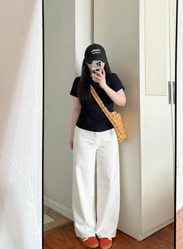 好喜歡黑白的搭配,因爲這兩種顏色組合一起是完全不會出錯的,正肩黑色短袖t恤+白色牛仔闊腿褲,簡直是專爲微胖女生打造的組合,利用亮色包包和鞋子進行提亮,太出彩好看了。