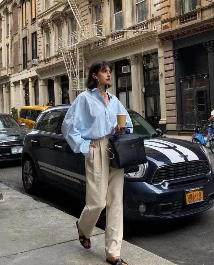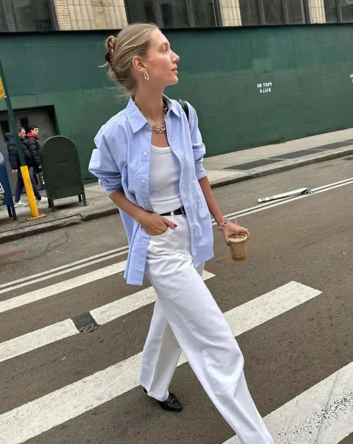 Ins博主的穿搭,基本上都是以簡約款、基礎色調爲主的,不管是上班通勤,還是逛街都很合適,一件水藍色襯衫就能玩轉整個春夏,普通人也可以直接照搬的穿法。