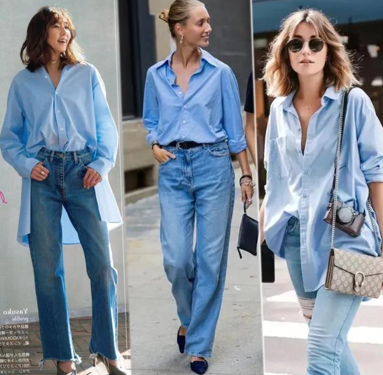 兩種不同的藍色組合一起,就算是同色系,也不會顯得太單調,讓你的造型更顯層次,在夏天的時候就選擇水藍色襯衫配淺藍牛仔褲,這樣兩種淡淡的藍色疊加一起,瞧着既溫柔又不失高級。