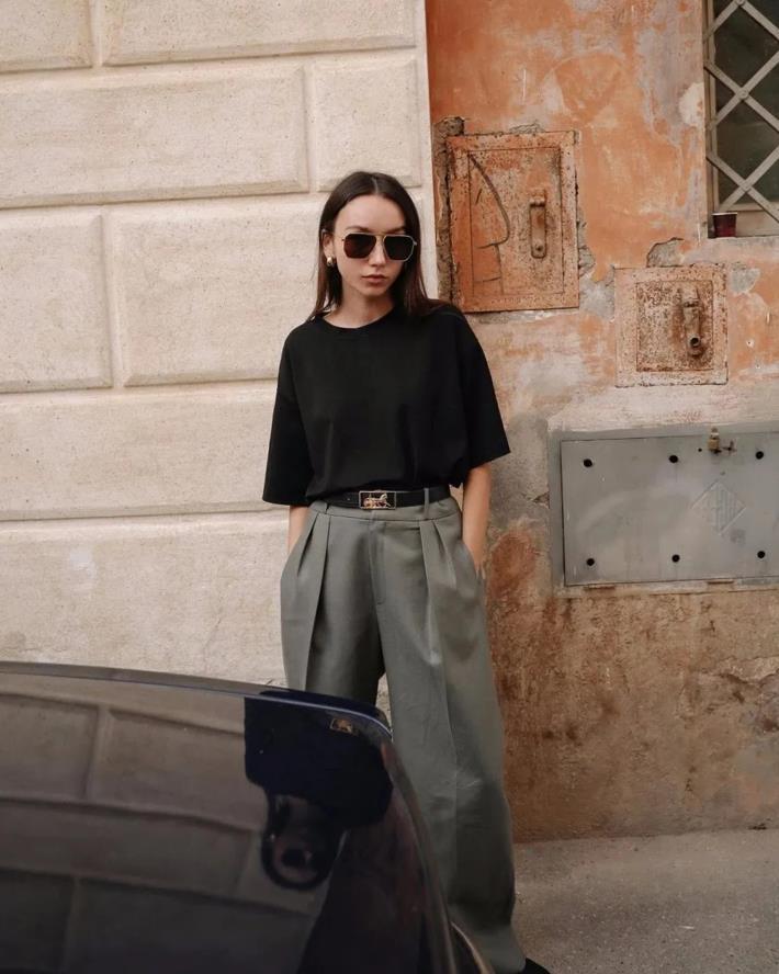 不過與白色t恤想比,黑色的t恤休閒氣息則沒有那麼強,稍微顯得內斂一些,更是自帶酷帥感,比起白色t恤更容易穿出高級感,在搭配上也很方便,配各種褲子裙子都很合適。