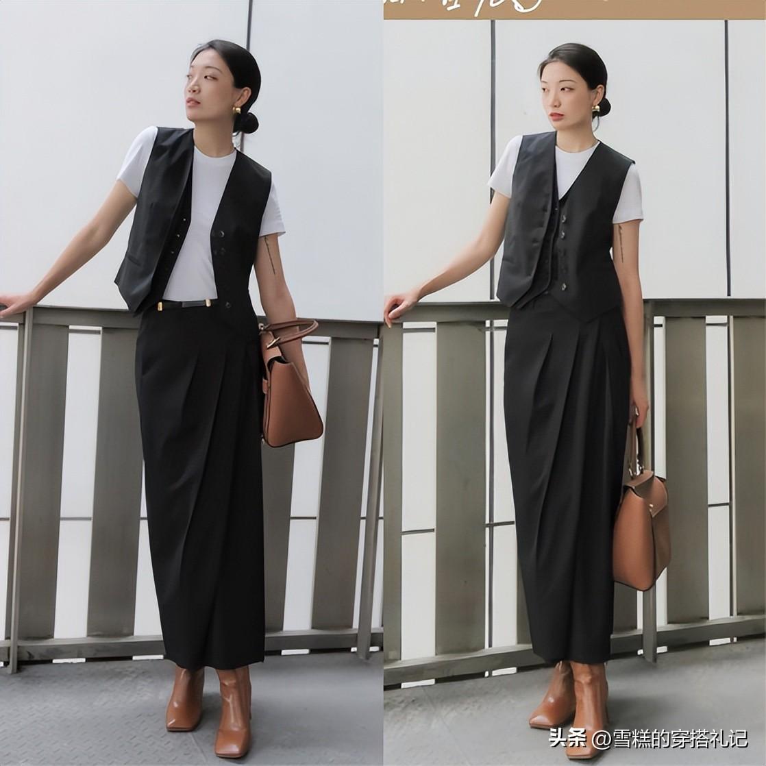 如果想要讓好的氣質狀態得以展現的話,那麼在這裏建議各位女性記住一個法則,就是一定要讓我們更爲標準的身材比例被強調出來,也就是在這個時候可以運用上短下長的搭配組合進行呈現,塞腰的方式又或者是搭配短款的t恤,結合高腰長款的優雅型裙裝都可以。