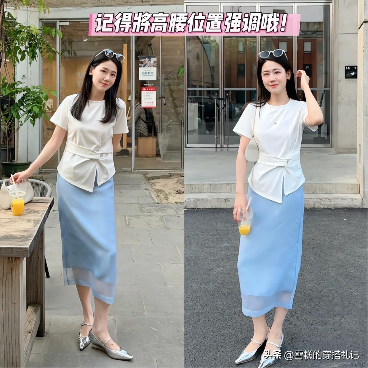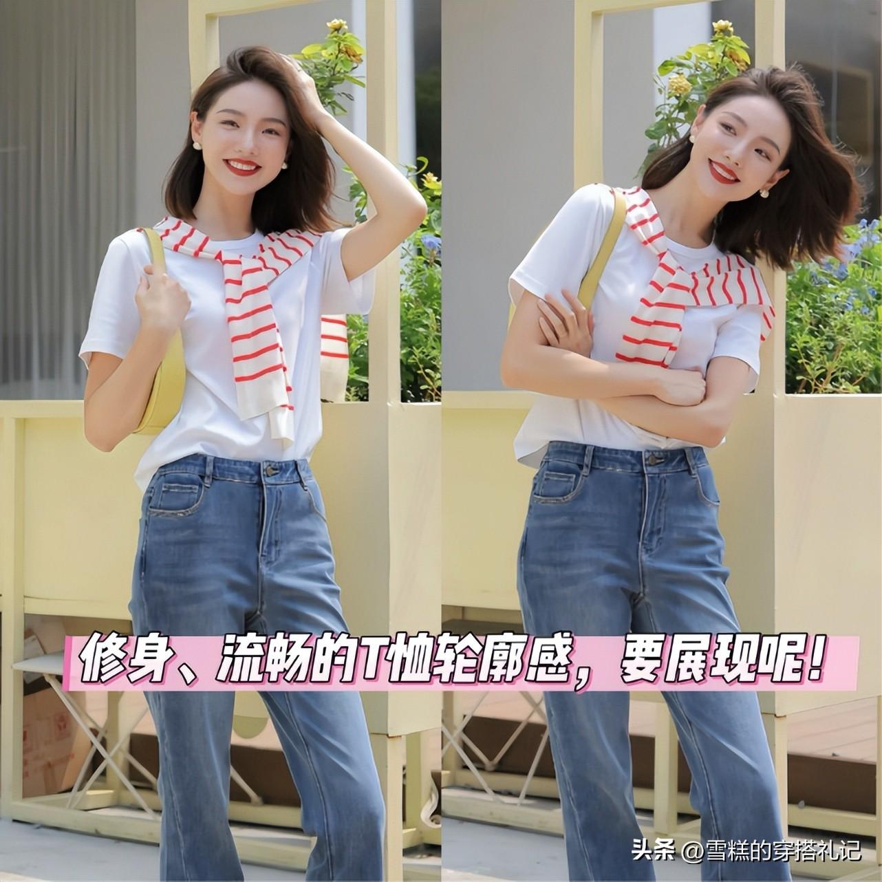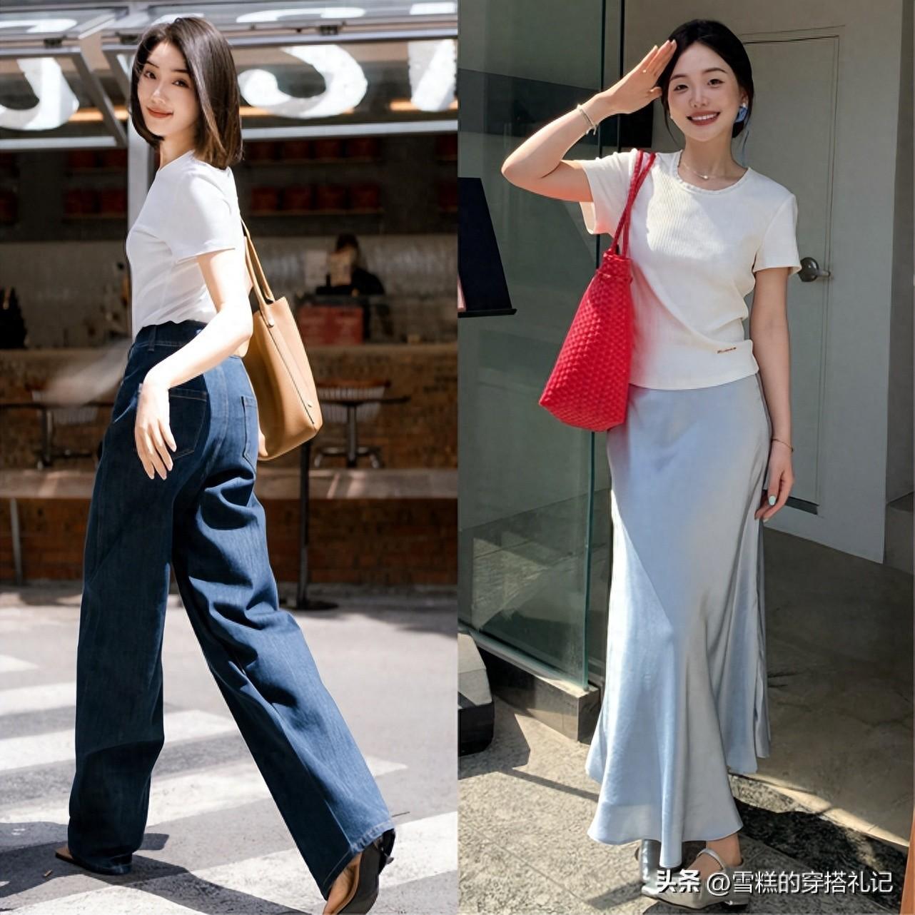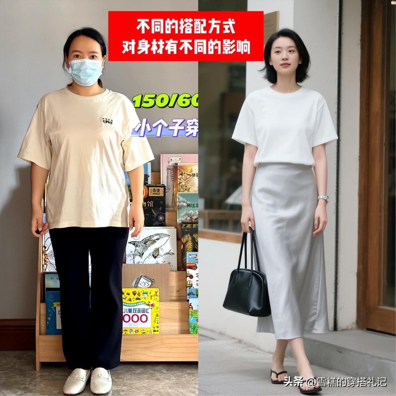 ③ 且簡約的白T恤,不同搭配對身材有不同影響