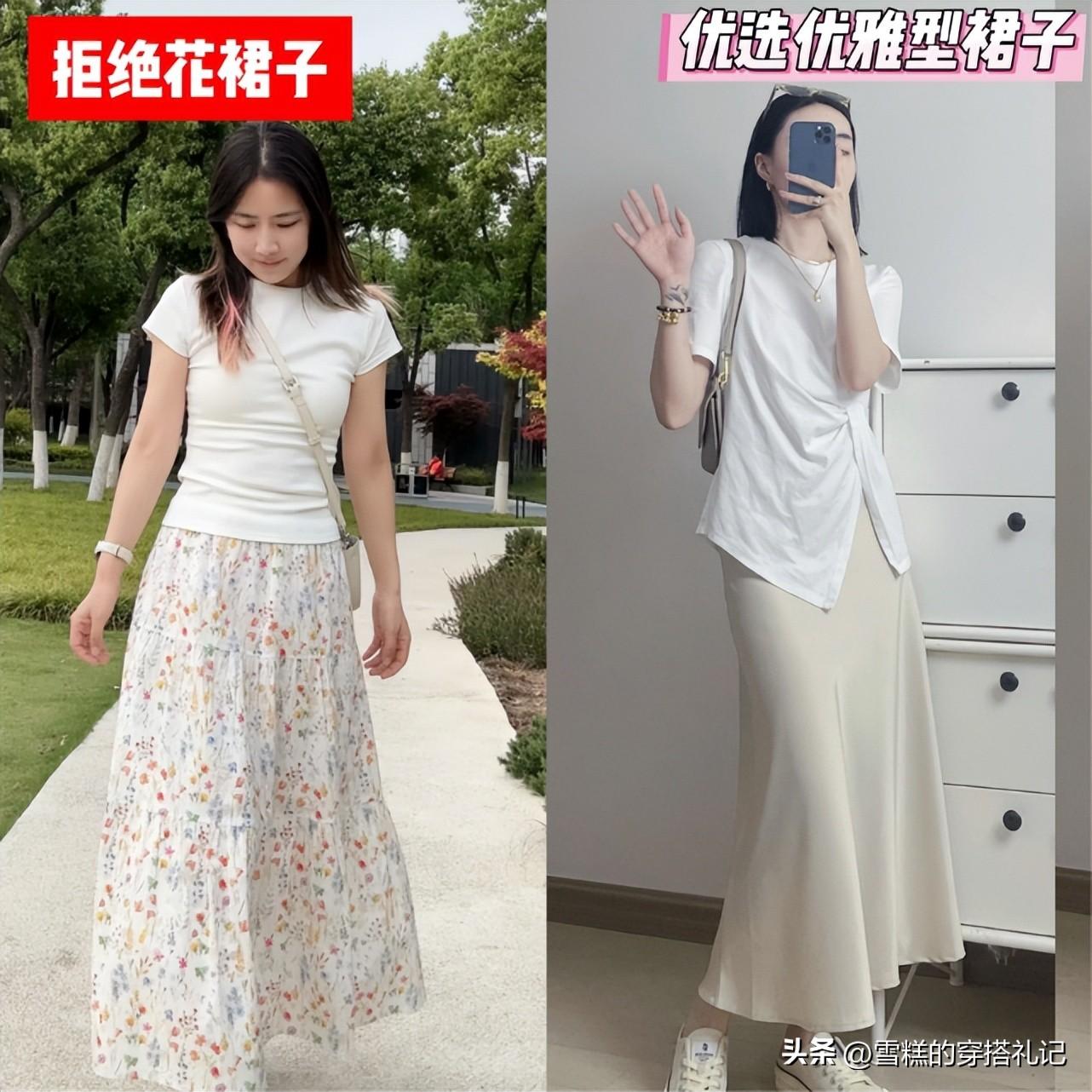 ② 白T恤別穿花裙子,要選優雅高級的裙裝