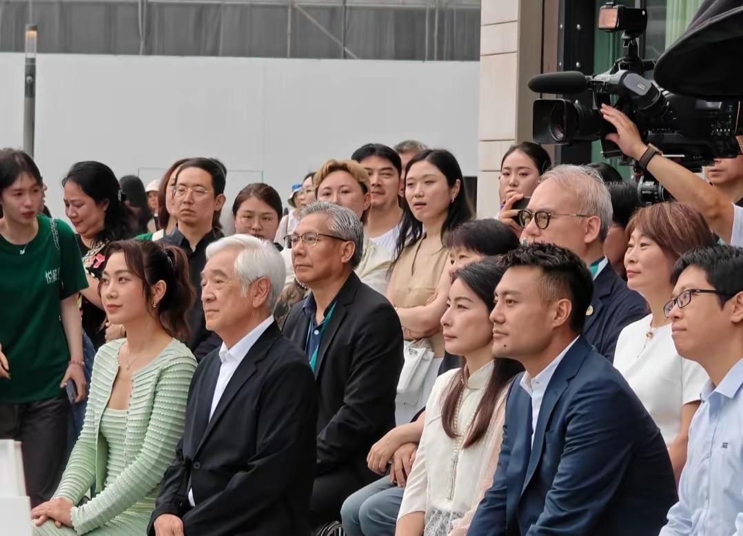 在整場活動中,郭晶晶也是被安排在C位,她身邊的男子就是品牌方領導人。在旁邊的位置,坐着的秦沛。