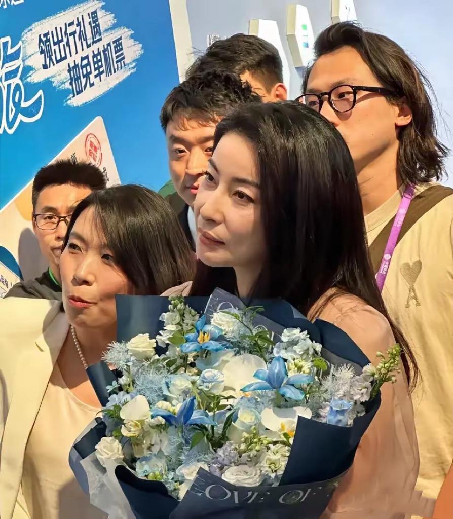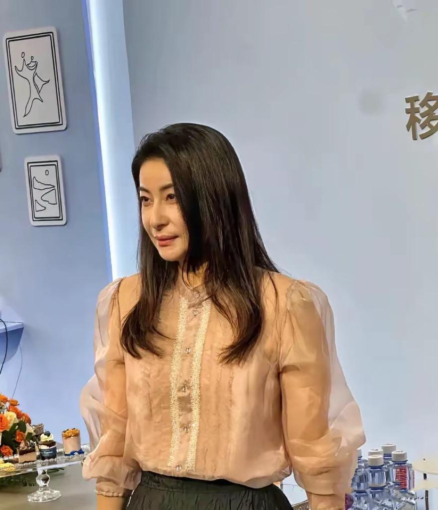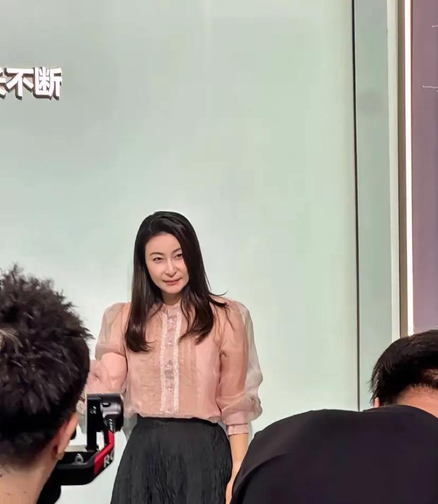 5月15日,剛剛在北京水立方出席線下活動,那一天她穿着香檳色的薄紗襯衫,配了黑色直筒褲,溫柔又端莊。