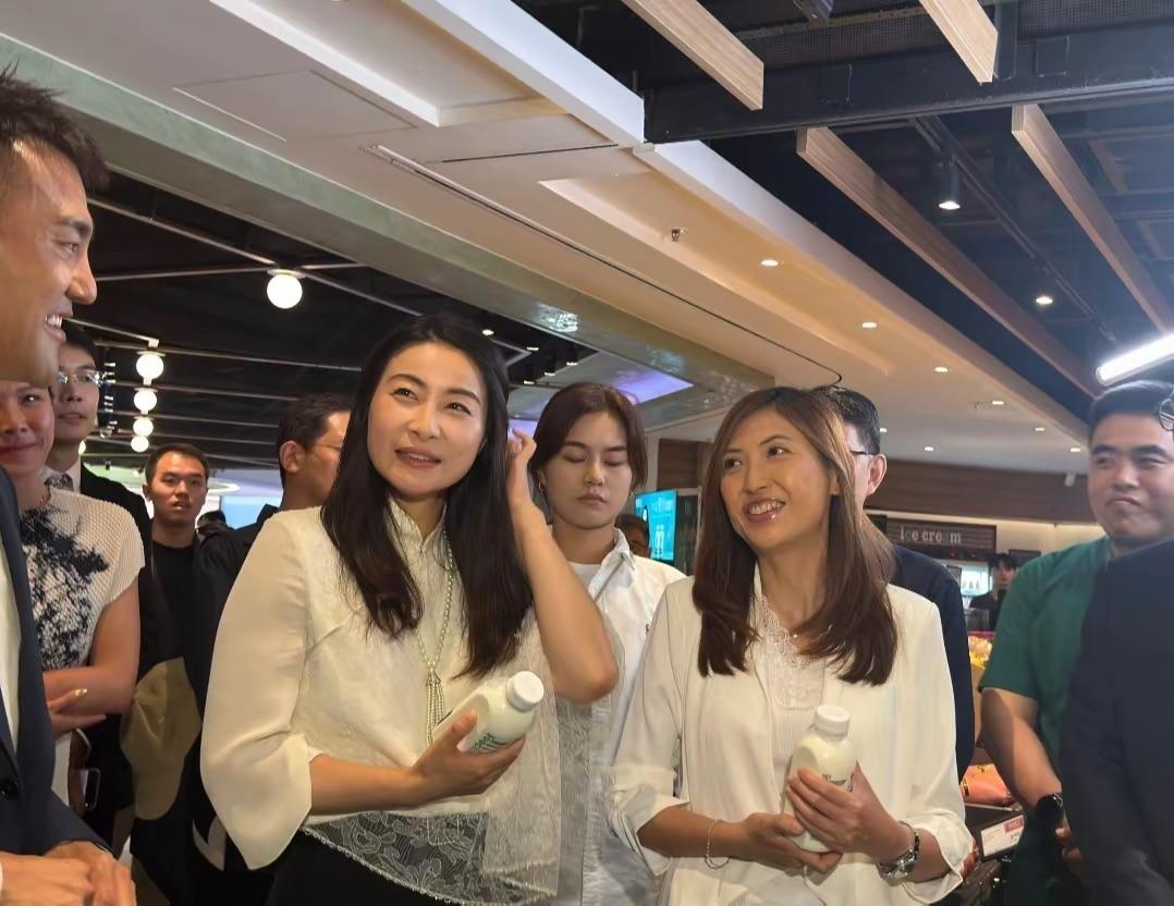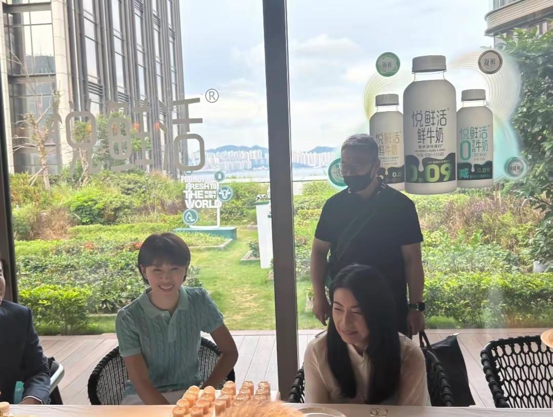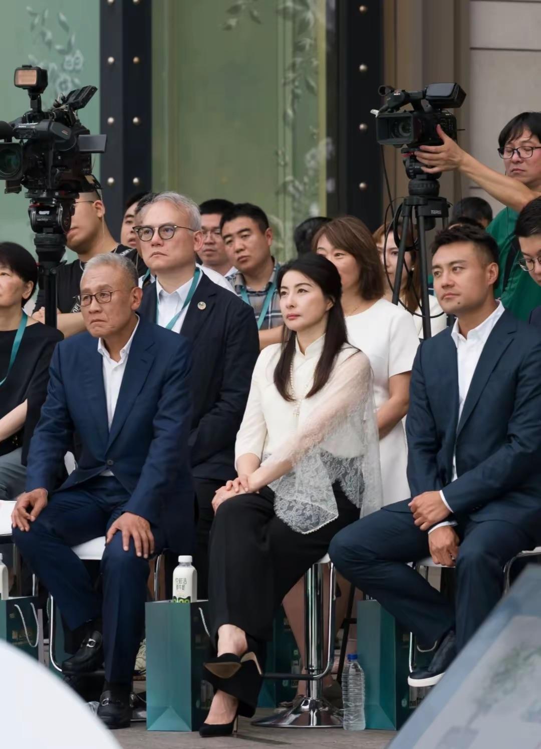 看郭晶晶抿着嘴巴、稍微傾斜着身子,認真的傾聽品牌方領導人的介紹。就知道作爲代言人,郭晶晶是專業的。