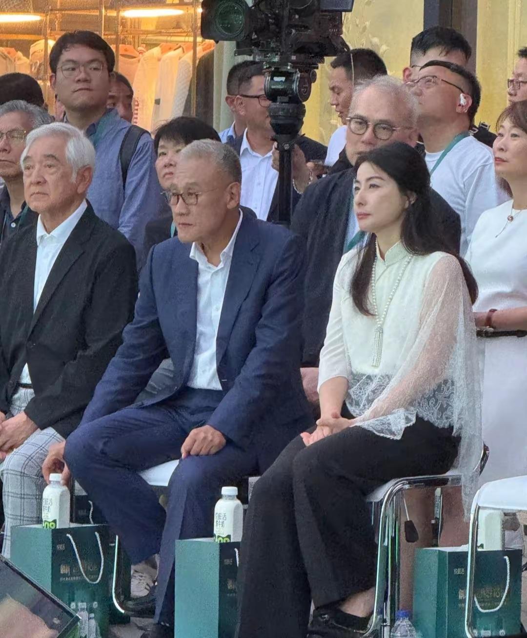 值得一提的是,秦沛的穿搭也很有特點。一旁的品牌領導人,西裝革履打扮得很大方。秦沛則用黑色西服配了格子褲。
