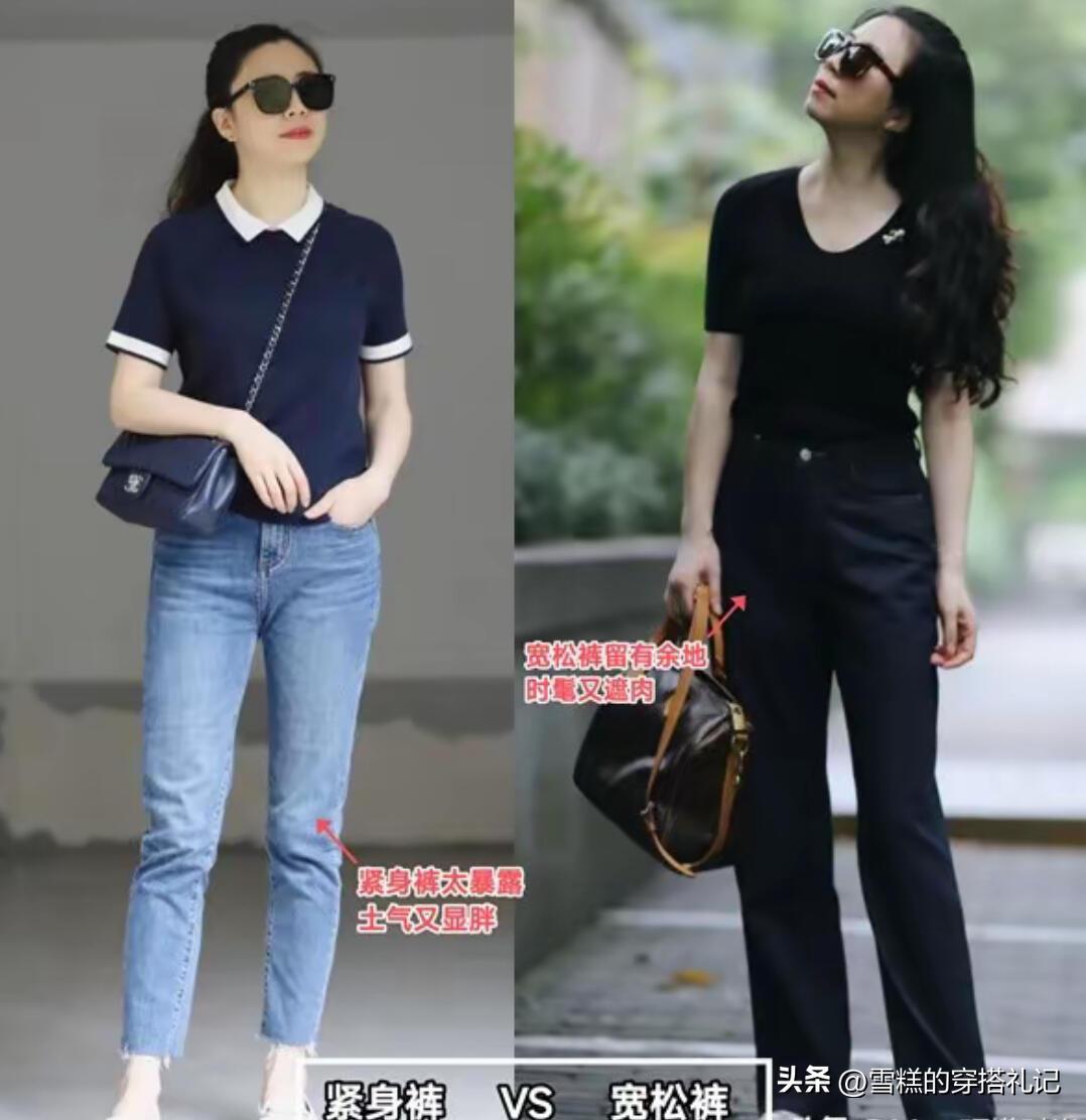 大齡女人挑選褲子,無論是哪種版型,都要保證空間感足夠,褲腿太窄,就很容易勒出贅肉感,並且穿上身非常不適,無論怎麼搭配,都缺乏高級時髦的效果。
