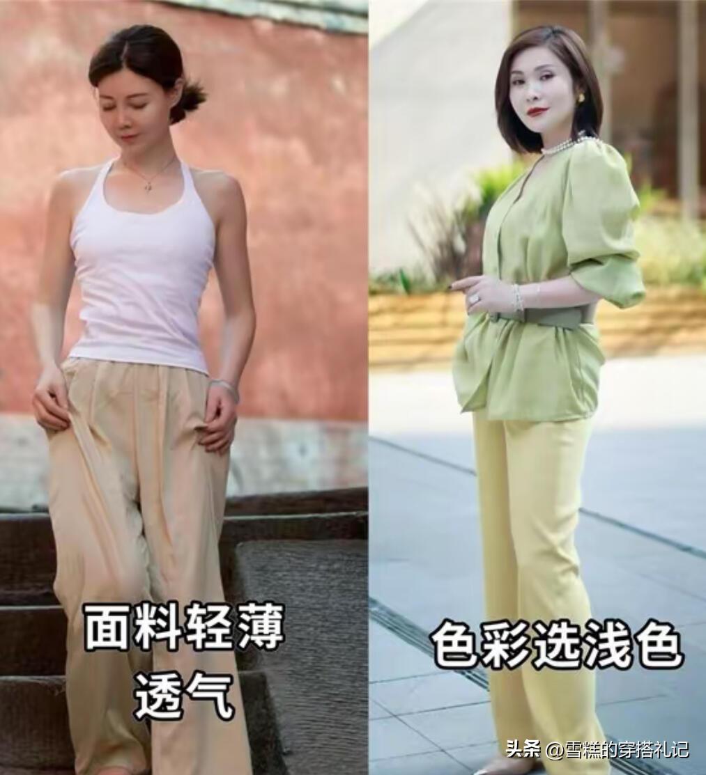 建議大家可以換成輕薄透氣的亞麻、氨綸或者冰絲材質,更符合夏季的穿衣需求,再配合上淺色系,舒適時髦一把抓。