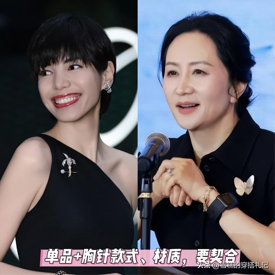 除了項鍊和手鍊這樣的配飾之外,也建議各位女性其實到中年的時候可以多多的將能夠彰顯出來高級以及有品味質感的胸針單品進行入選。像何超瓊以及孟晚舟這些職場女性,她們所選擇的配飾其實胸針要比項鍊更多的。