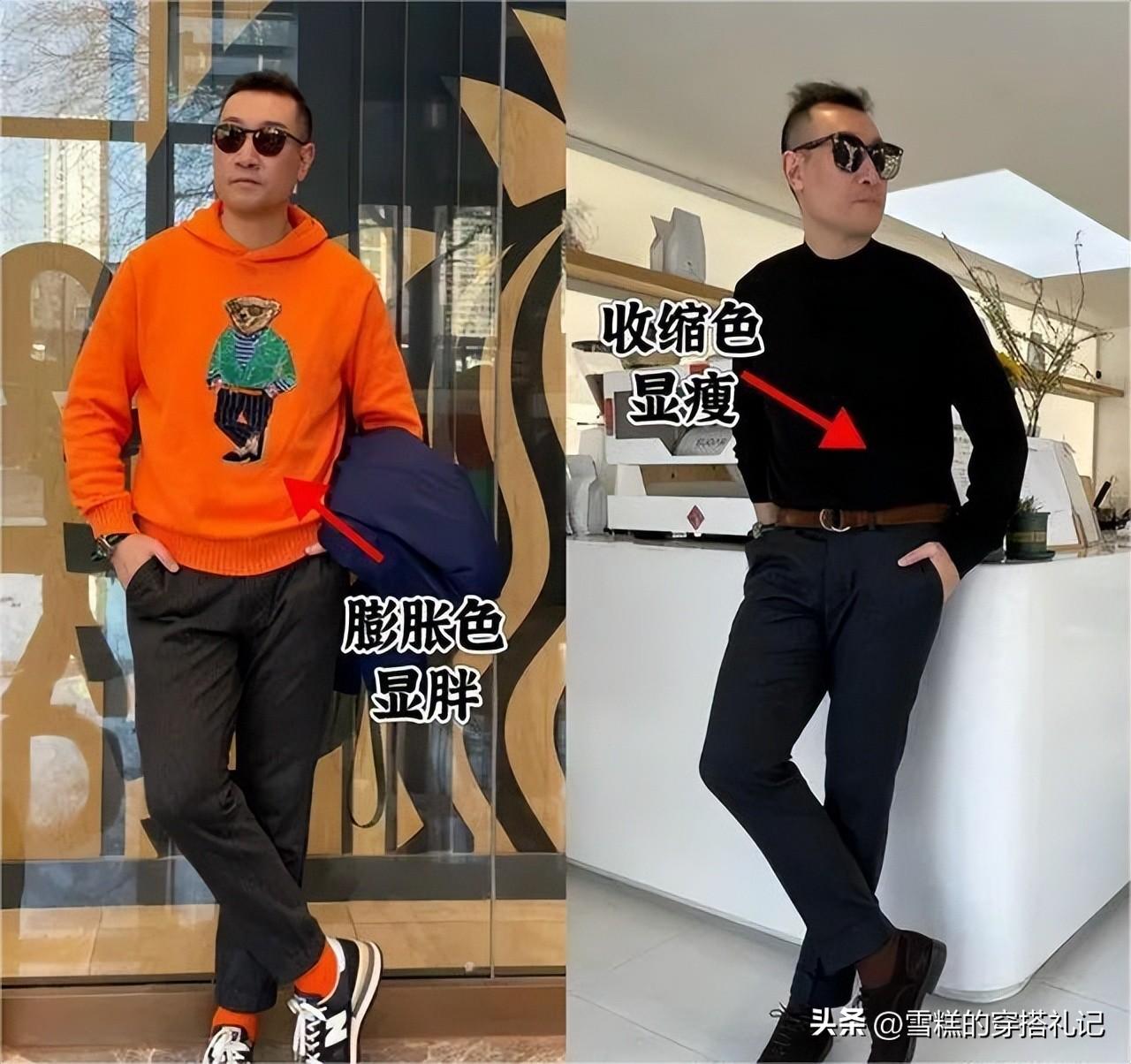 此外選擇深色系或帶有豎條紋圖案的衣物,也能在視覺上起到收縮身形、顯瘦的效果,讓中年男性在穿搭中展現出更爲型男的一面。