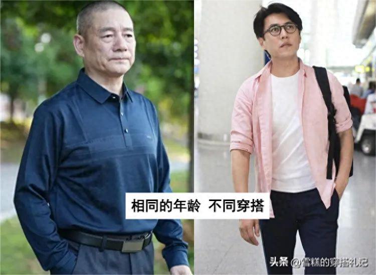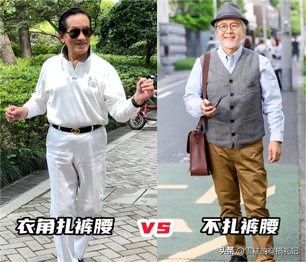 這裏可能就會有人反駁了,塞褲腰不是能夠劃分身份比例,讓人看起來更顯高嗎,但這僅限於年輕男孩,上了年紀的男人這樣穿搭真的錯,看看下面的對比圖你就知道了。