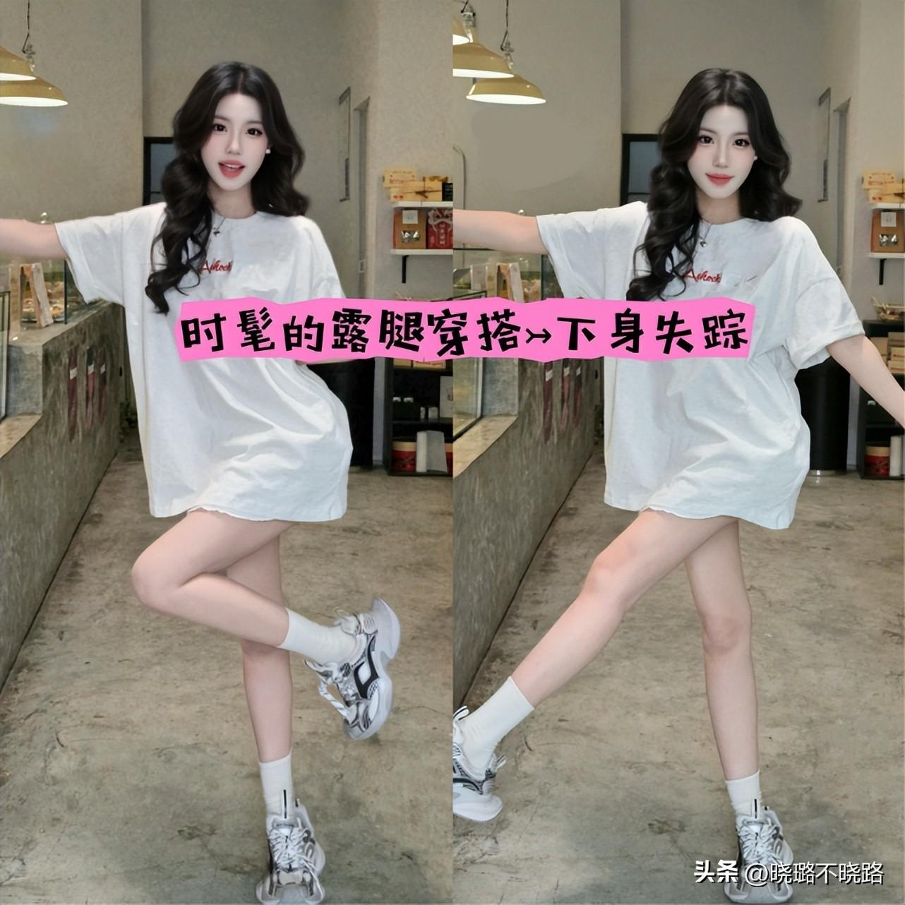 下身失蹤的穿搭方式比較關鍵的點就是我們在選擇單品系列,尤其是上衣的單品一定是屬於比較偏長款的設計,最好是能夠剛剛遮擋住我們臀胯部位是最好的,例如像襯衫或者是T恤之類的經典型單品,但也記得要搭配足以展現明朗輪廓的設計系列哦 對於我們的身形狀態會更具優勢的。