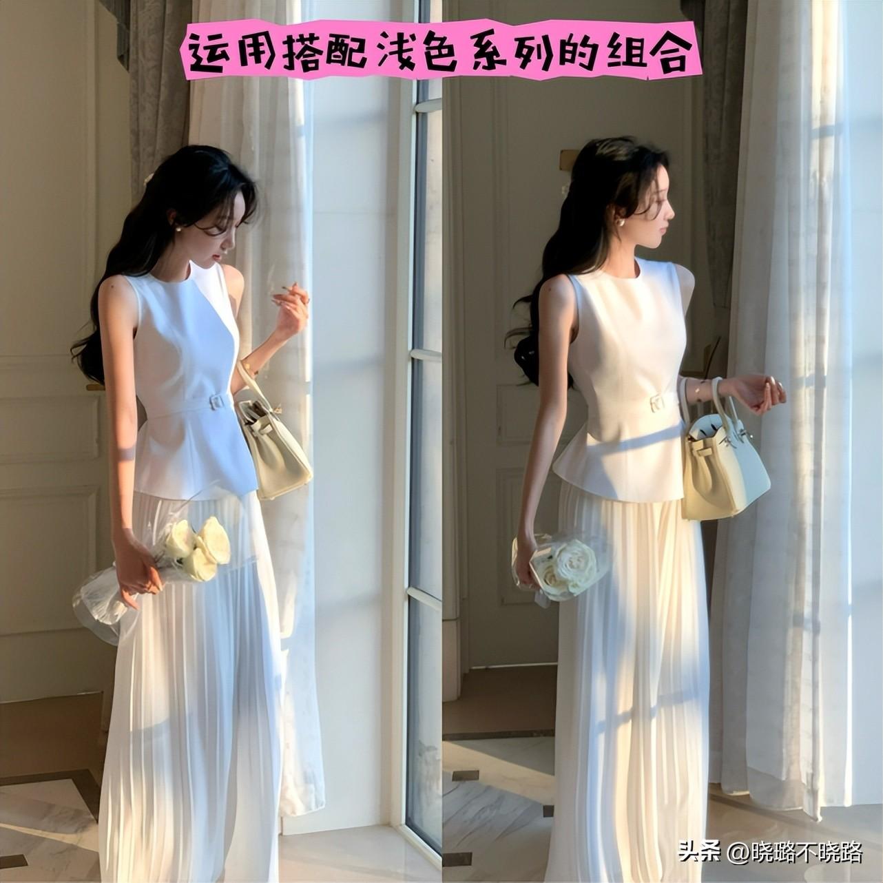 色系的搭配組合尤其是在春夏階段的時候最好是可以將淺色系進行優選呈現,裙裝的組合也可以考慮清新溫柔的碎花系列,30+的女性色系的搭配就認準基礎色或者中性色的搭配哦!