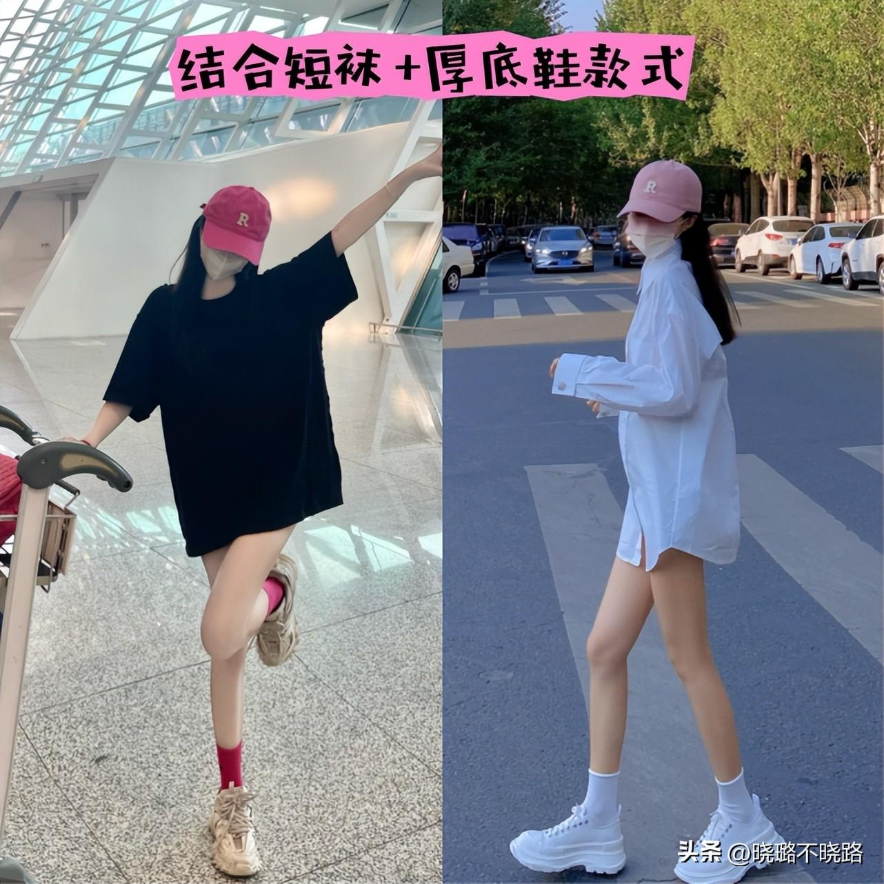 同時這種露腿的穿搭亦可加入短襪這樣的單品元素,對於腿部比較短的女性而言這樣的穿搭組合可以很好的將纖長的比例襯顯,28分的分割效果凸顯腿部的視覺優勢,想要更顯瘦的話就記得搭配暗色系的短襪哦。且露腿系列的搭配組合真的很適合結合厚底鞋、增高鞋的款式。