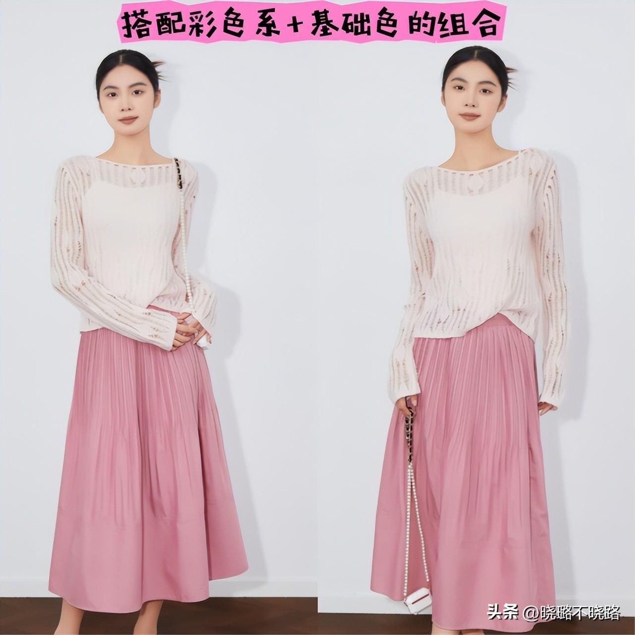 而且不管是選擇奶奶衫和裙子的組合,還是其他單品的組合搭配,在運用彩色系列的時候其實也可以優先於考慮加入一些比較基礎的淺色系,例如像白色或者是淺灰色這一類與彩色調的單品進行組合,搭配起來的時候就要比純彩色系的組合更加的和諧以及穩定一些了。