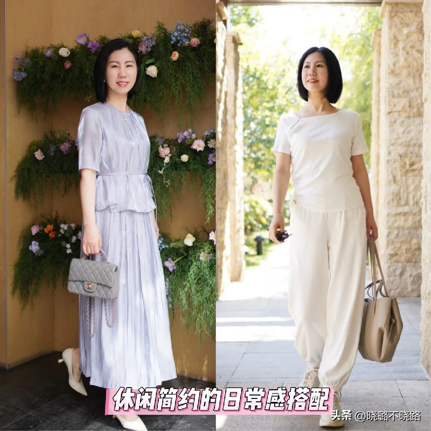 又或者可以多多搭配一些彰顯優雅和溫柔感的單品系列,但一定要記得是以簡約經典的大氣感爲主,例如像優雅的醋酸裙或者是醋酸褲這一類,又或者是豆腐褲的搭配。整體的色系走向還是要以淺色又或者是基礎色系的組合爲主。