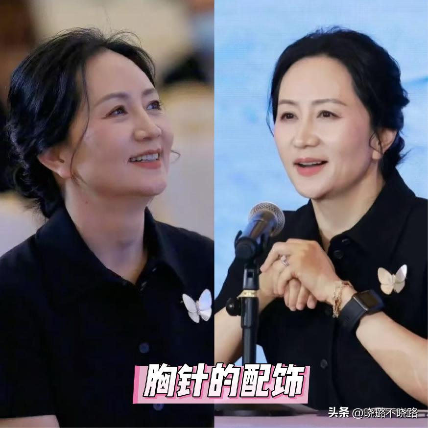 能夠真正讓一位女性的好品位彰顯出來的絕對是看你如何選擇的配飾。對於孟晚舟來說她更高頻率的單品應用是像胸針以及手錶這樣系列的單品搭配在自己的衣服上,整體的穿搭效果會更加的彰顯職場利落的視覺風格。