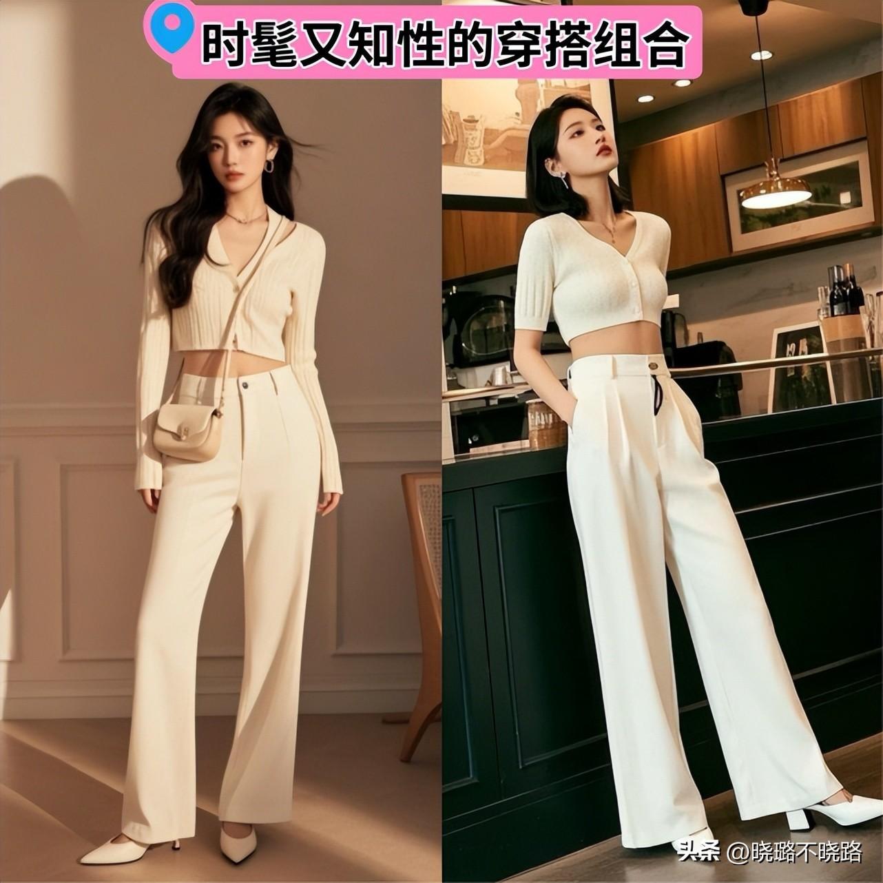 這樣的組合搭配既然都顯高了,那麼必然是要將非常標準有優勢的身材比例給彰顯出來的,在這裏提醒各位女性可以優先於選擇搭配短款的上衣,和高腰且長款的闊腿褲進行組合,讓整體視覺上不僅彰顯上短下長的標準性,而且更加極具利落感。