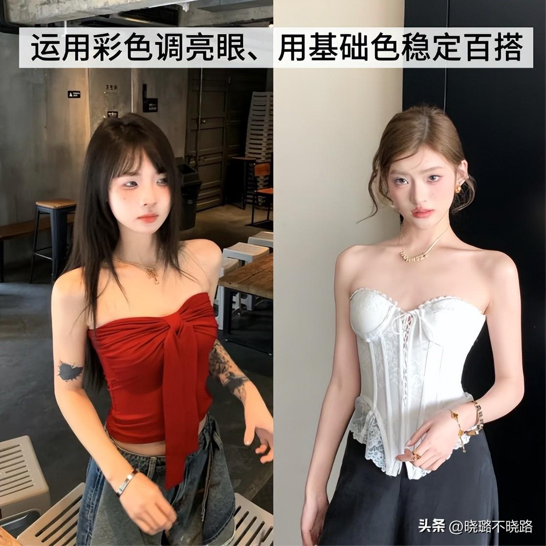 像黑白灰以及飽和度較低一些的顏色它本身就是屬於非常基礎穩定的系列,所以對於風格走向也幾乎是完全不挑的,所以大家在搭配抹胸上衣的時候想要沒那麼張揚的感覺,那麼基礎色就是你的優選,而像紅色或者是很經典的彩色調,給人的感覺就是時髦有亮眼哦。