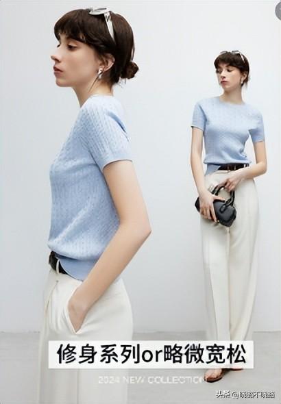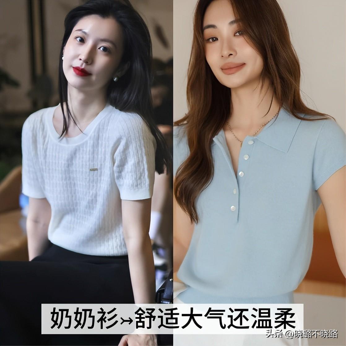 第2款推薦各位女性在夏季當中其實可以進行優選,搭配的就是舒適又優雅的奶奶衫,這一款單品的材質它本身就是應用了針織的系列,所以穿起來的時候舒適度以及柔軟度是非常好的。給人的感覺是要比常規的t恤更加偏向於溫柔以及隨性優雅的感覺的。