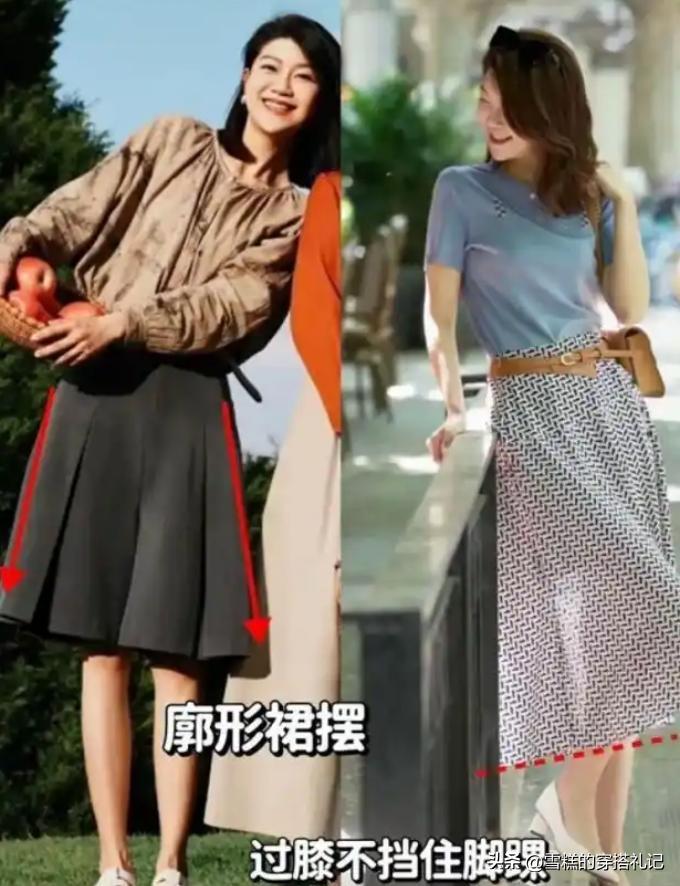 無論大家差不差錢,都一定要選擇高級有質感的鞋子,而梨形身材可以試試廓形裙襬加窄長鞋子的組合。廓形的裙襬能夠幫助你收緊和遮擋大腿和臀部的贅肉,讓你視覺上看起來更加纖細,而窄長的單鞋、涼鞋能夠幫助你降低下半身的量感,兩者結合在一起格外的輕盈舒適。
