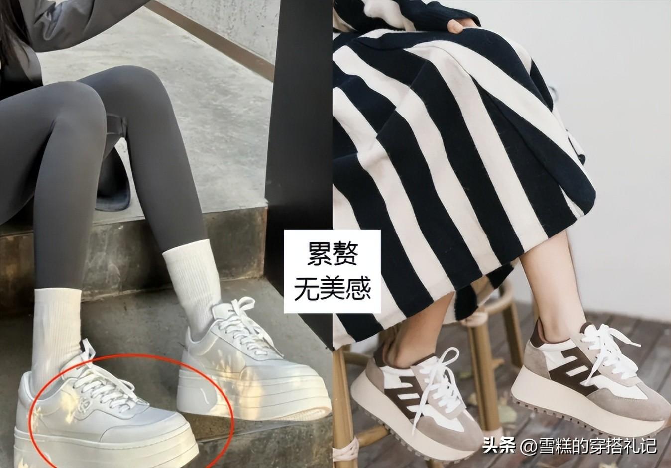 曾經非常流行的綁帶鞋子,一度成爲了大家鞋櫃中的愛寵,但是這種綁帶設計的鞋子看起來非常的時尚洋氣,但是長長的鞋帶延伸在小腿的位置,視覺上會給人更加花裏胡哨的感覺,而且也很容易勒出多餘的贅肉,讓你的腿型看起來更加拉胯。關鍵帶有綁帶設計的巴黎五鞋擁有很薄的鞋底,穿起來也會突出腿部的粗壯感,並不適合大多數普通身材的女性。