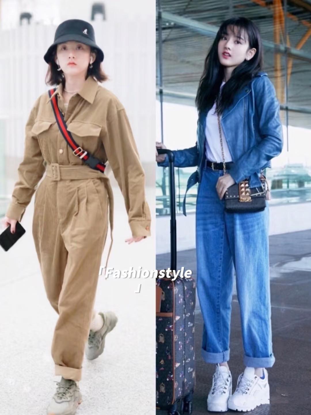 女明星的穿搭,總是有點特別。喜歡不一樣的風格,就得接受更時尚的單品。卡其色的連體裝,是颯美且拉風的,挽起褲腿,讓小個子的身形更挺拔。