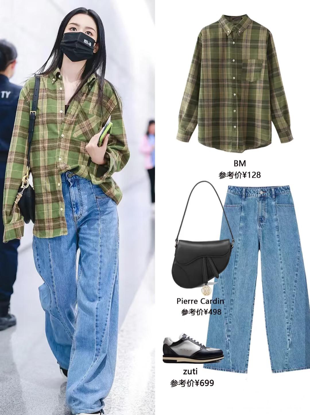 很高級的配色,有一種復古做舊的感覺。這種寬鬆的格子襯衫,配高腰的牛仔褲就很大方。塞衣角的方式,拉風又顯腿長。