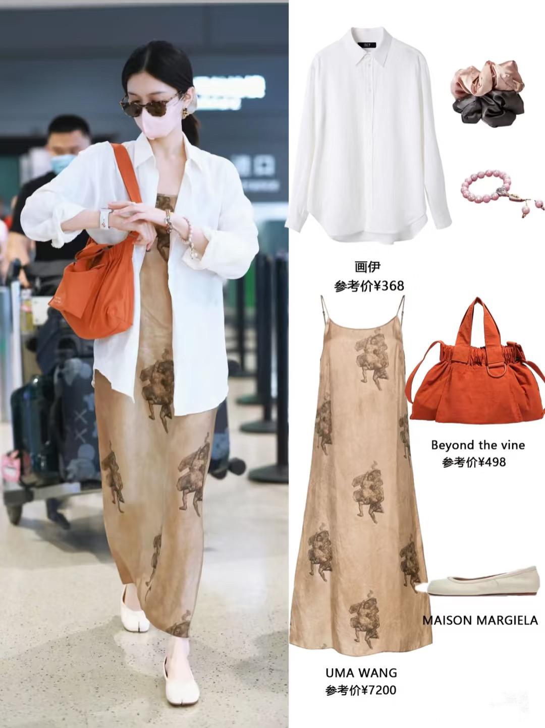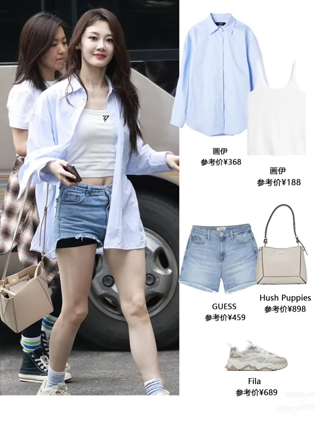 如果覺定吊帶+超短褲的搭配太過熱辣,也不敢露出自己有點肉感的上臂,那麼選擇疊搭一件寬鬆襯衫,就可以更加自然體面。