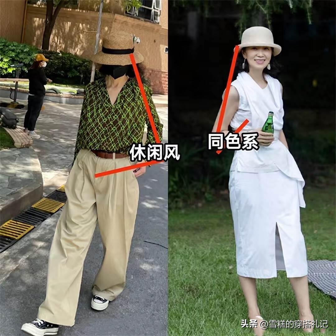 一組造型的重心,往往也可以決定最終的形象分,如果穿搭重心整體偏下,那麼視覺就會不自覺的下移,從而導致顯矮的情況出現,相比之下,重心上移的造型,更有利於達到顯高的效果。