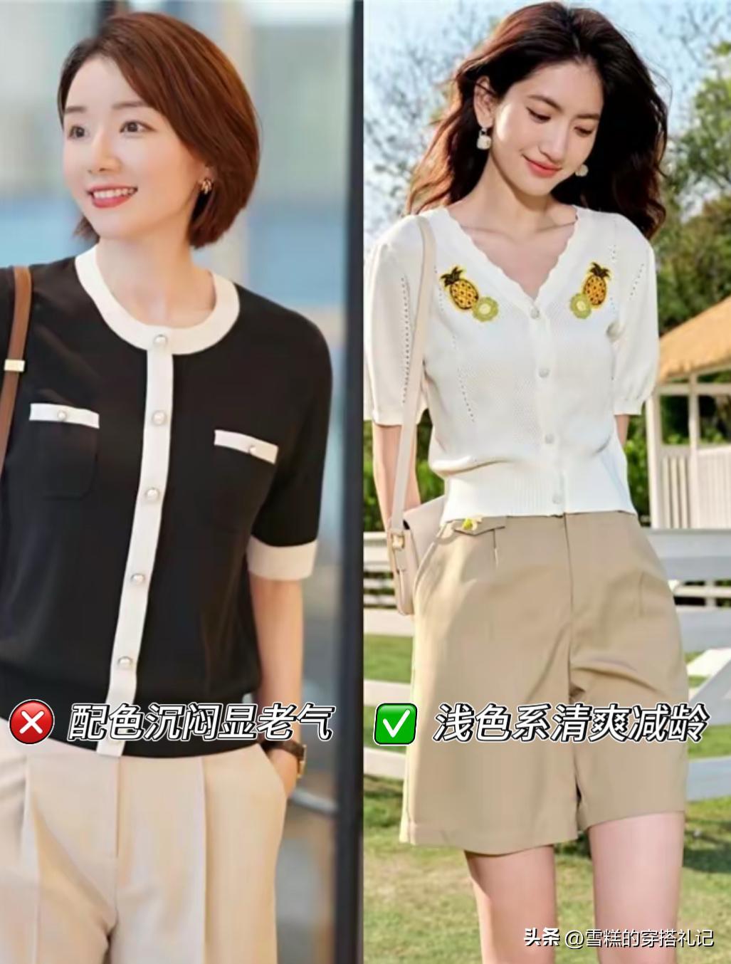服裝配色對心情也有着很大的影響力,顏色選對了,在視覺上就能達到降溫的效果,而且還能讓人感到更加愉悅。相比起深色系,更建議大家選擇淺色系的奶奶衫,襯膚顯白還特別清爽。