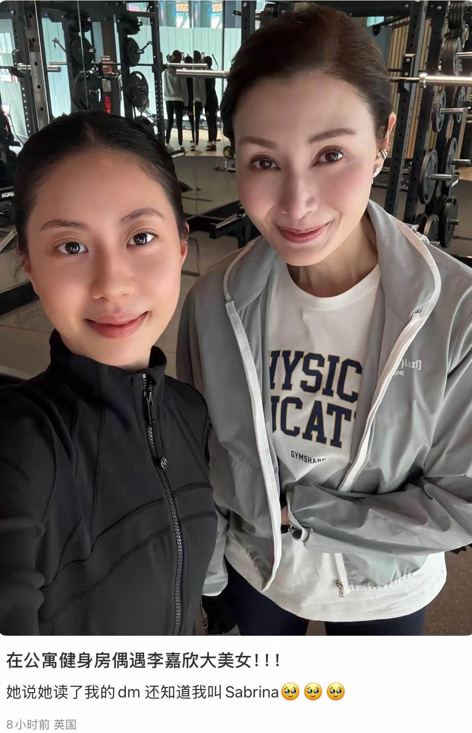 時隔一年,再次偶遇李嘉欣,她已經當起了陪讀媽媽。因爲在英國健身公寓裏被偶遇,說明她已經搬來英國生活了。