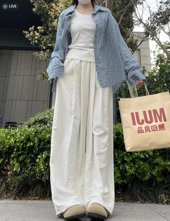 在很多人的眼裏,白色褲子都是最容易顯胖的存在,但白色的闊腿褲卻完全不會有這種問題,很溫柔的奶白色,面料軟糯,直筒寬鬆的版型,可以很好遮住你腿粗、大屁股,胯寬梨形身材姐妹超適合,搭配上,白褲子也比較好搭,無論是選擇純色的上衣,還是格子的,都很好看。