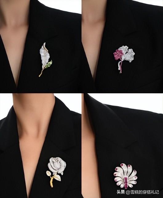 而且你穿什麼樣的單品,最終所呈現出來的氣質是什麼樣的。也建議大家一定要將你的胸針款式與其在風格和氣質的襯托方面完全一致。到底是利落高級的職場穿搭還是優雅簡約的隨性搭配!